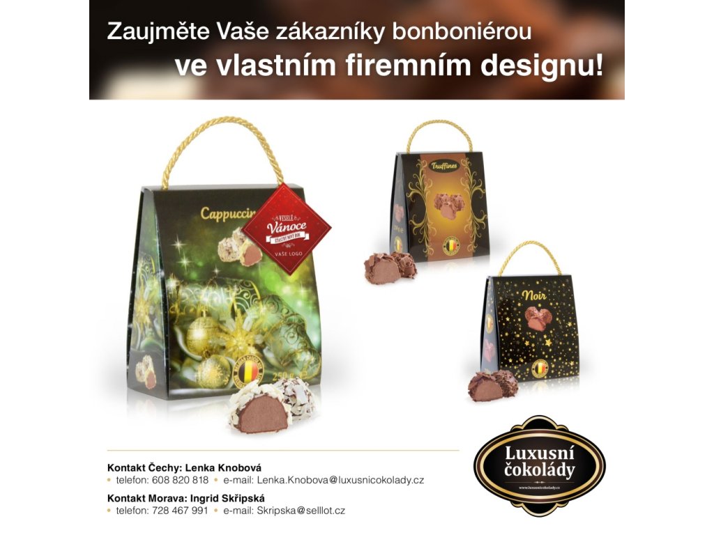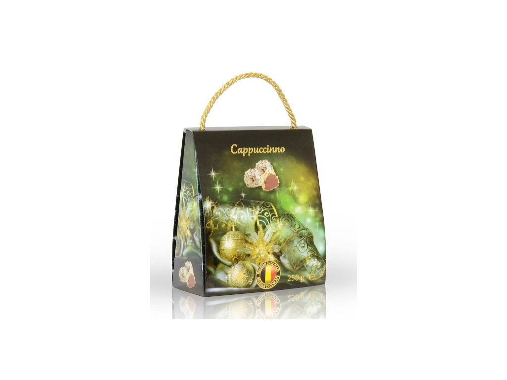 Mléčné čokoládové lanýže cappuccinno s vločkami z bílé čokolády v dárkové tašce - Vánoce 250g