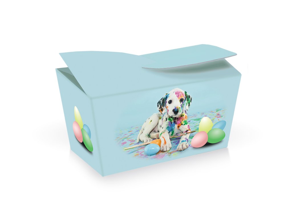 Velikonoční pejsek (modrá) - minibonboniéra s kakaovými pralinkami 28g