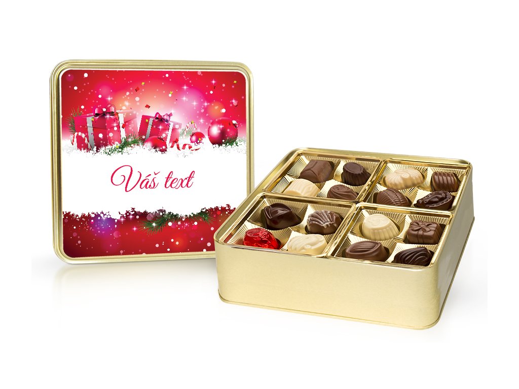 Vánoce – výběr belgických pralinek 400 g v plechové dóze (s vlastním textem)