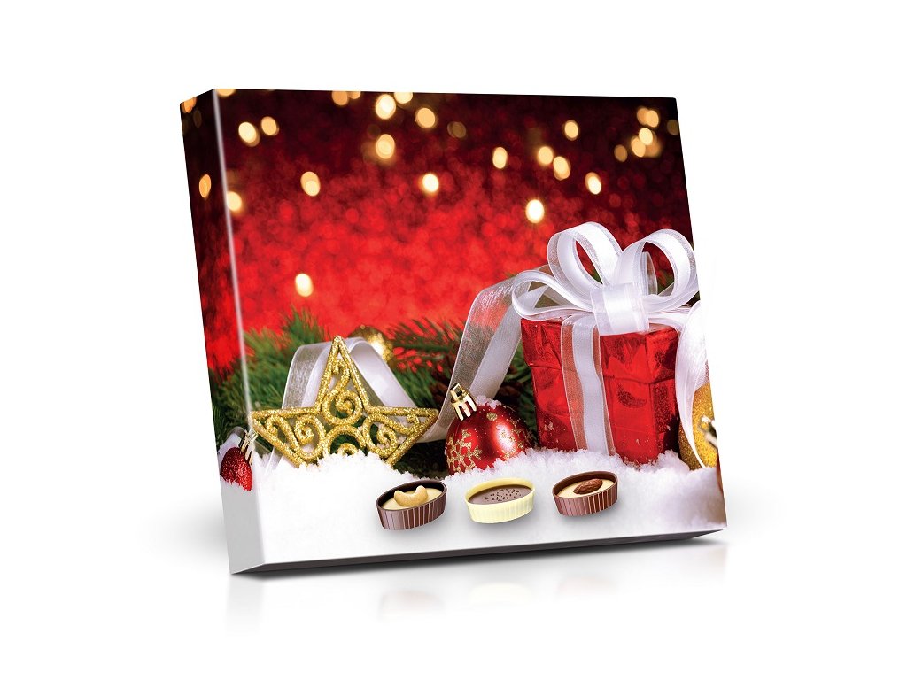 Vánoce (červený dárek) - Plněné čokoládové lodičky s ořechy 125g