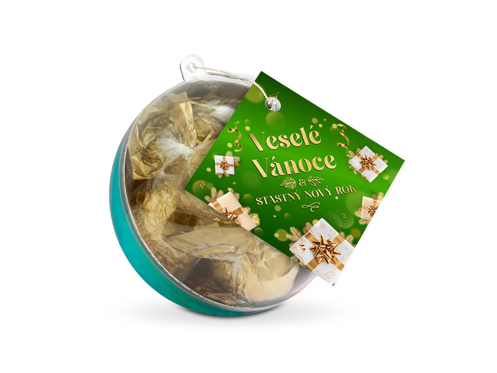 Vánoční zelená baňka - zlaté oříškové pralinky 70g