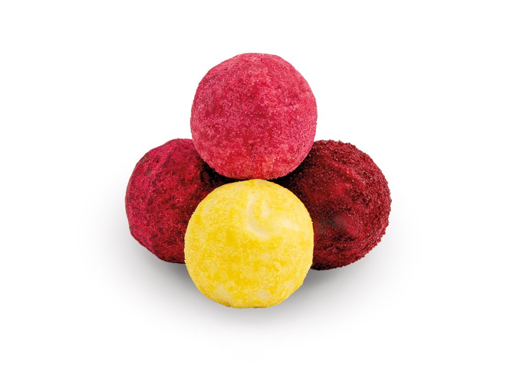 Složení: bílá čokoláda (cukr, kakaové máslo, sušené mléko, sušené odstředěné mléko, sušená syrovátka (z mléka), kokosové čipsy, pražené kousky mandlí, rozemleté oplatky, mléčný tuk, emulgátor (sójový lecitin), aroma (vanilín)), hořká čokoláda (cukr, kakaová hmota, kakaové máslo, sušená syrovátka (z mléka), emulgátor (sójový lecitin), aroma (vanilín)), plně hydrogenovaný kokosový olej, kokosový olej, kakaový prášek, sušené odstředěné mléko, sušená syrovátka (z mléka), maltodextrin, plně hydrohenovaný palmojádrový olej, mléčný tuk, palmový olej, koncentrát (z červené řepy, z mrkve, ze světlice barvířské, citrónu), emulgátor (sójový lecitin), rýžová mouka, prášek z černého rybízu, sůl, kyselina citrónová, pomerančový olej, aroma „třešně“, vanilín, „rum“, „jogurt“. Může obsahovat ořechy, arašídy a lepek. Bílá čokoláda: obsah kakaové sušiny minimálně 27%. Hořká čokoláda: obsah kakaové sušiny minimálně 56%. Uchovejte na suchém místě, chraňte před teplem. Vyrobeno na ukrajině