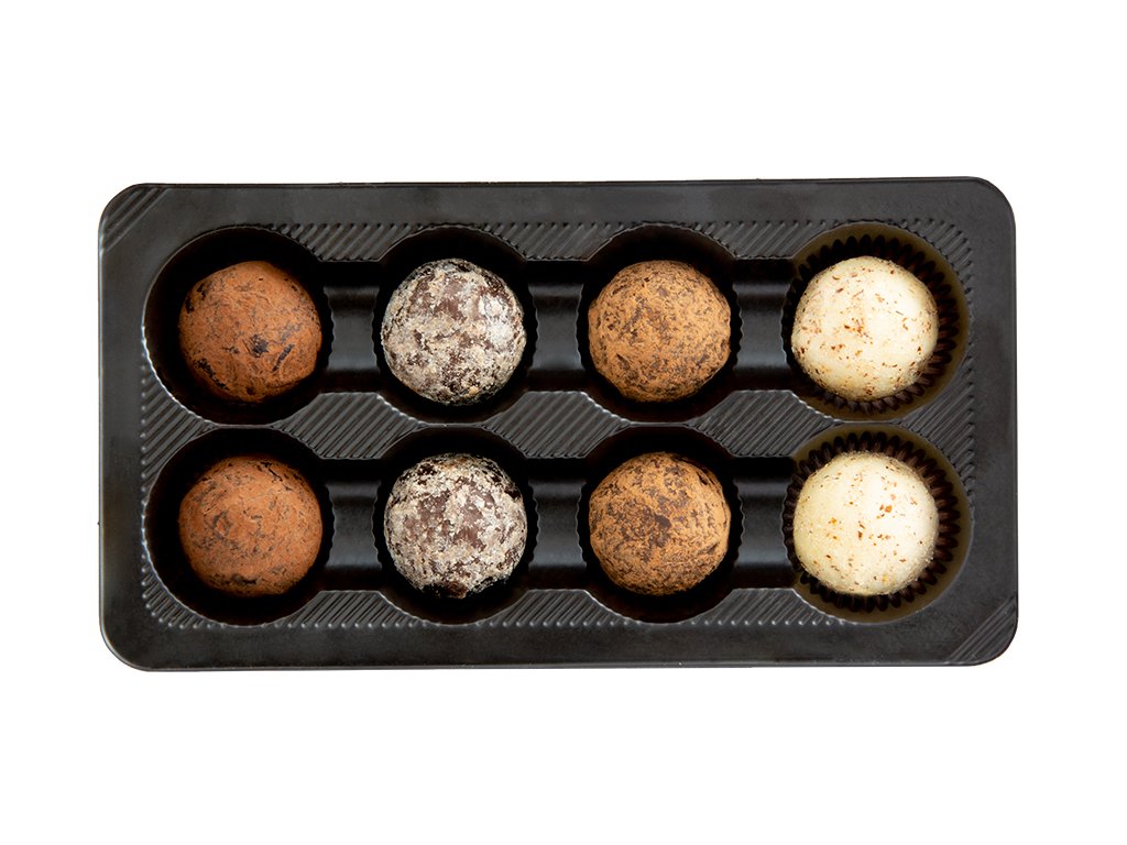 Výběr čokoládových truffles (mix) - Veselé Velikonoce (květovaná krabička) 200g