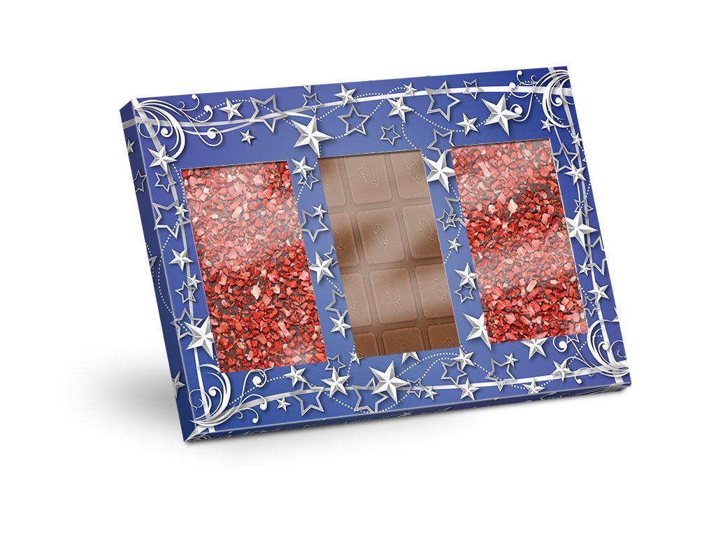 Trojbalení čokolád - mléčná s posypem jahoda a mléčná - Modré Vánoce 300 g