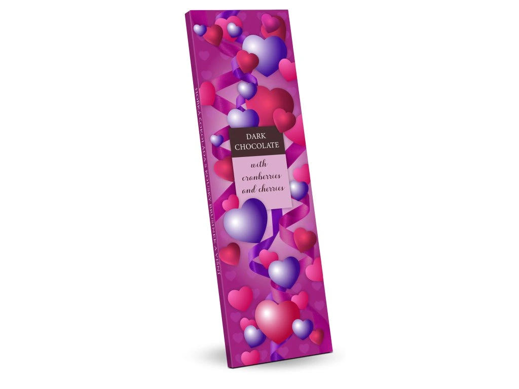 Srdíčka - hořká čokoláda s kousky brusinek a višní 225g