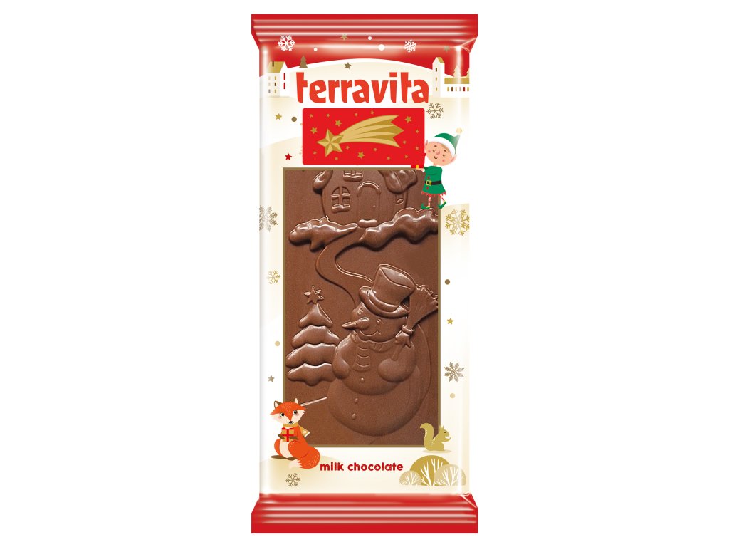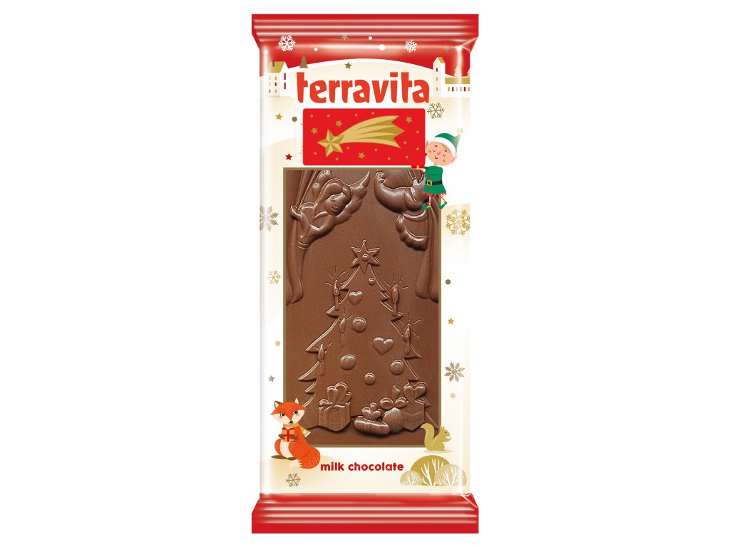 Složení: cukr, kakaové máslo, sušené plnotučné mléko, kakaová hmota, sušená syrovátka z mléka, máselný tuk, emulgátor: lecitiny (obsahuje sóju), vanilkový extrakt.