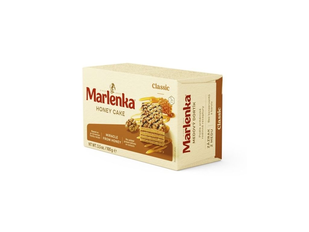 Složení: Zahuštěné mléko slazené s kakaem (mléko, cukr, glukózový sirup, kakao se sníženým obsahem tuku), margarín [palmový tuk, voda, plně ztužený kokosový tuk, řepkový olej, emulgátory (mono- a diglyceridy mastných kyselin, slunečnicové lecitiny), jedlá sůl, regulátor kyselosti (kyselina citrónová), aroma], obohacená pšeničná mouka (pšeničná mouka, fumarát železnatý, niacin, kyselina listová, vitamin B1, vitamin B2), cukr, vaječná melanž, med 4,3%, vlašské ořechy 1,5%, karamelizovaný cukrový sirup, kypřící látka (hydrogenuhličitan sodný), přírodní aromata (vanilkové, vlašský ořech), aroma (ethylvanilin).