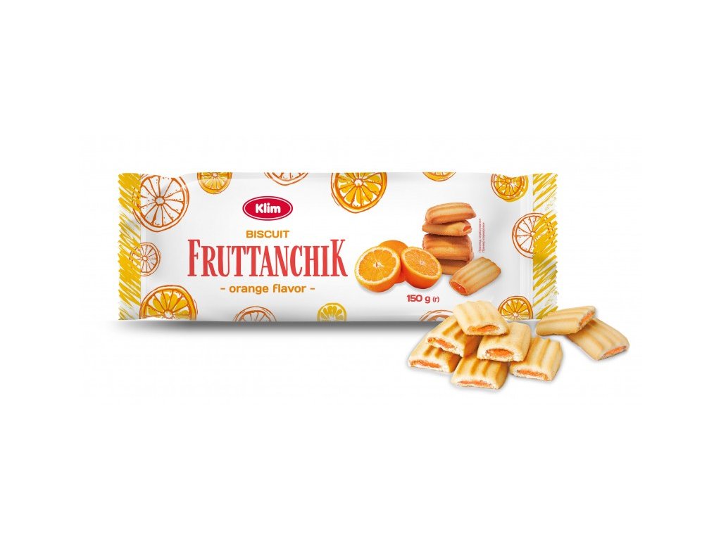 Klim Fruttanchik - sušenky s pomerančovou náplní 150 g (min. trv. do 12. 06. 2026)