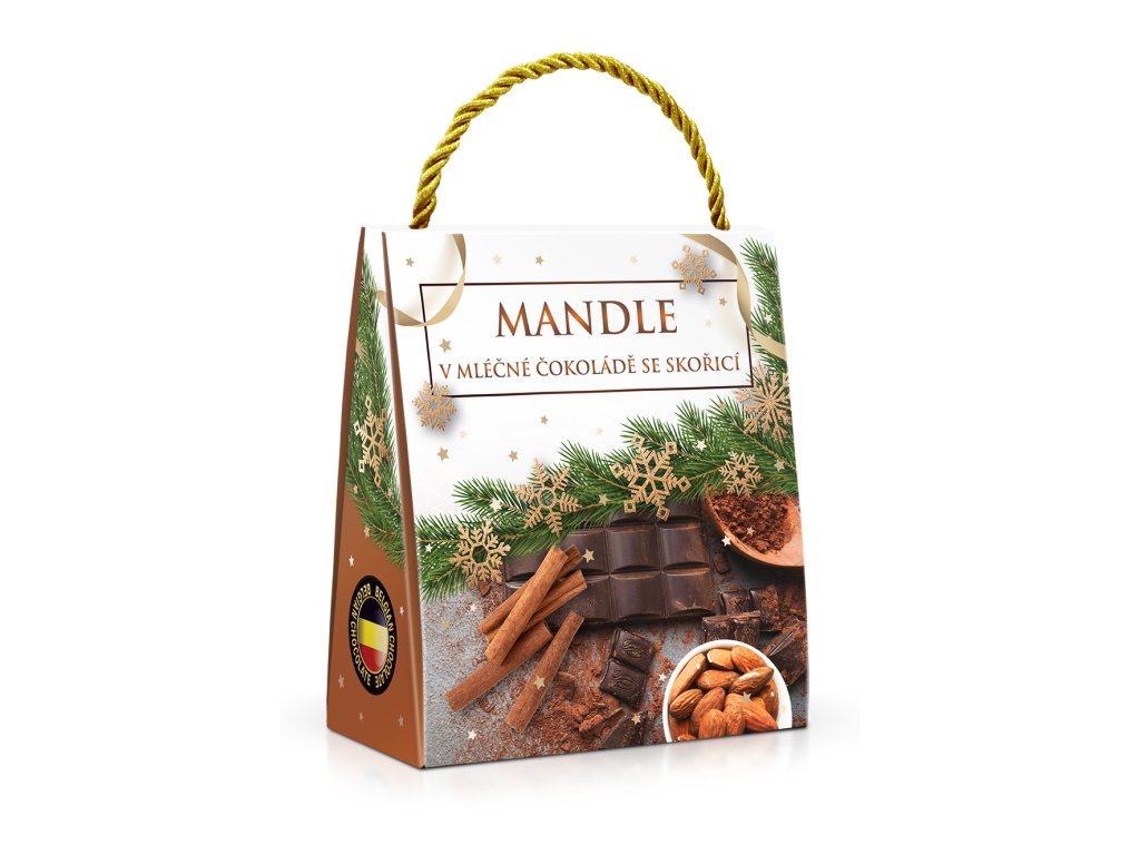 Mandle v mléčné čokoládě se skořicí - Vánoční větvička (bílohnědá taška) 200g