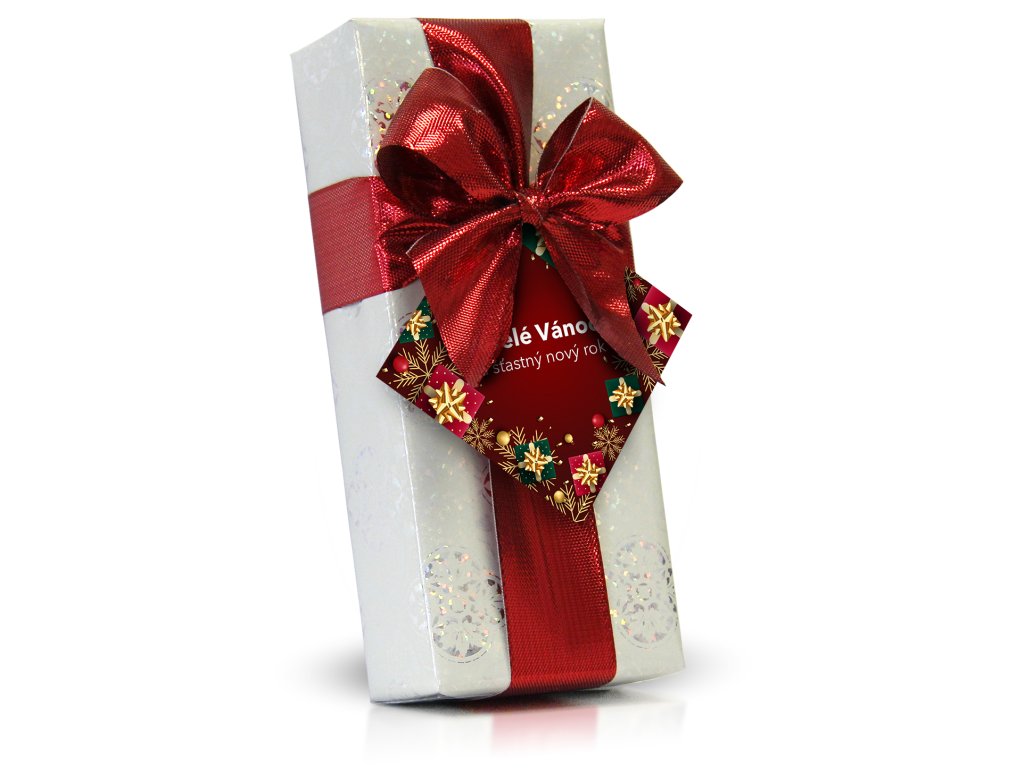 Veselé Vánoce - Italské čokoládové pralinky v metalickém papíru s červenou mašlí 84g